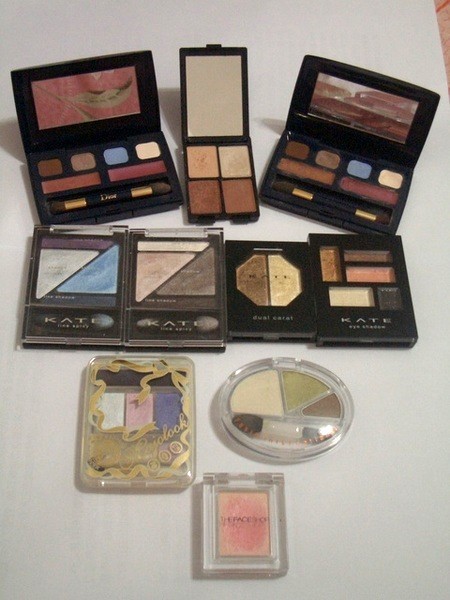 第一排:Dior眼影盒兩盒、中間是Lancome大地色眼影盒 (全部都是N年前送的)