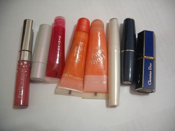 左到右:fasio糖瓷光釉唇彩410、CANMAKE06、曼秀雷敦、Maybelline、